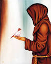 Francisco de Assis nasceu na cidade de Assis, Úmbria, Itália, em 1182. Pertencia à burguesia, e dessa condição tirava todos os proveitos. Como seu pai, tentou o comércio, mas logo abandonou a idéia por não ter muito jeito para isso. Sonhou, então, com as glórias militares, procurando desta maneira alcançar o status que sua condição exigia. Contudo, em 1206 para espanto de todos, Francisco de Assis abandonou tudo, andando errante e maltrapilho, numa verdadeira afronta e protesto contra sua sociedade burguesa. Entregou-se totalmente a um estilo de vida fundado na pobreza, na simiplicidade de vida, no amor total a todas as criaturas. Com alguns amigos deu início ao que seria a Ordem dos Frades Menores ou Franciscanos. Com Santa Clara, sua dileta amiga, fundou a Ordem das Damas Pobres ou Clarissas. Em 1221, sob a inspiração de seu estilo de vida nasceu a Ordem Terceira para os leigos consagrados. O pobrezinho de Assis, como era chamado, foi uma criatura de paz e de bem, terno e amoroso. Amava os animais, as plantas e toda a natureza. Poeta, cantava o Sol, a Lua e as Estrelas. Sua alegria, sua simplicidade, sua ternura lhe granjearam estima e simpatia tais que fizeram dele um dos santos mais populares dos nossos dias.